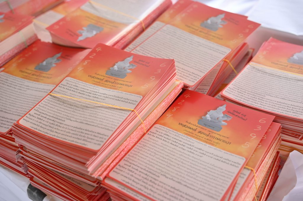 ในงานดังกล่าวได้จัดขึ้นบริเวณเมรุ ซึ่งมีรูปปั้นพญายมราชขนาดใหญ่อยู่บนเมรุ เพื่อให้ประชาชนระลึกถึงบุญบาป การทำดีละเว้นการทำชั่ว เป็นเครื่องเตือนใจเตือนสติให้กับมนุษย์ ภายในงานอาจารย์นิติกฤตย์ยังได้จัดทำแผ่นพับบทสวดมนต์สอนเจ้ากรรมนายเวร และบทกรวดน้ำพญายมราช แจกให้ผู้ที่มาร่วมงาน 1 แสนฉบับ โดยมี ทูน หิรัญทรัพย์ นักแสดงรุ่นใหญ่ชื่อดัง มาร่วมงานดังกล่าว พร้อมกับร่วมแจกแผ่นพับบทสวดมนต์สอนเจ้ากรรมนายเวร ทำเอาวัดแทบแตกเลยทีเดียวเพราะมีประชาชนแห่มารับหนังสือสวดมนต์กันอย่างมากมาย